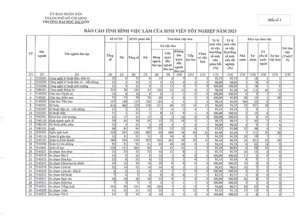 Báo cáo tình hình việc làm của sinh viên tốt nghiệp năm 2023 Báo cáo tình hình việc làm của sinh viên tốt nghiệp năm 2023 Thi Vo 2026-04-06T12:32:58+07:00 30/12/2024|Báo cáo tình hình việc làm sinh viên, Thông Báo| Related Posts Thông báo về việc nghỉ học của cấp tiểu học và trung học do dịch bệnh gây ra bởi virus Corona Gallery Thông báo về việc nghỉ học của cấp tiểu học và trung học do dịch bệnh gây ra bởi virus Corona 2/02/2020 Thông báo đầu năm học 2019 – 2020 của Trường Tiểu học Thực hành Đại học Sài Gòn Gallery Thông báo đầu năm học 2019 – 2020 của Trường Tiểu học Thực hành Đại học Sài Gòn 15/08/2019 Thông báo về việc tổ chức ôn tập, thi và cấp chứng chỉ Chuẩn kỹ năng sử dụng Công nghệ Thông tin (07/2019) Gallery Thông báo về việc tổ chức ôn tập, thi và cấp chứng chỉ Chuẩn kỹ năng sử dụng Công nghệ Thông tin (07/2019) 3/07/2019 Thông báo tuyển sinh vào lớp 1 Trường Tiểu học Thực hành Đại học Sài Gòn (năm học 2019 – 2020) Gallery Thông báo tuyển sinh vào lớp 1 Trường Tiểu học Thực hành Đại học Sài Gòn (năm học 2019 – 2020) 2/07/2019 Thông báo danh sách cán bộ, viên chức tham gia Kỳ thi THPT Quốc gia năm 2019 Gallery Thông báo danh sách cán bộ, viên chức tham gia Kỳ thi THPT Quốc gia năm 2019 13/06/2019