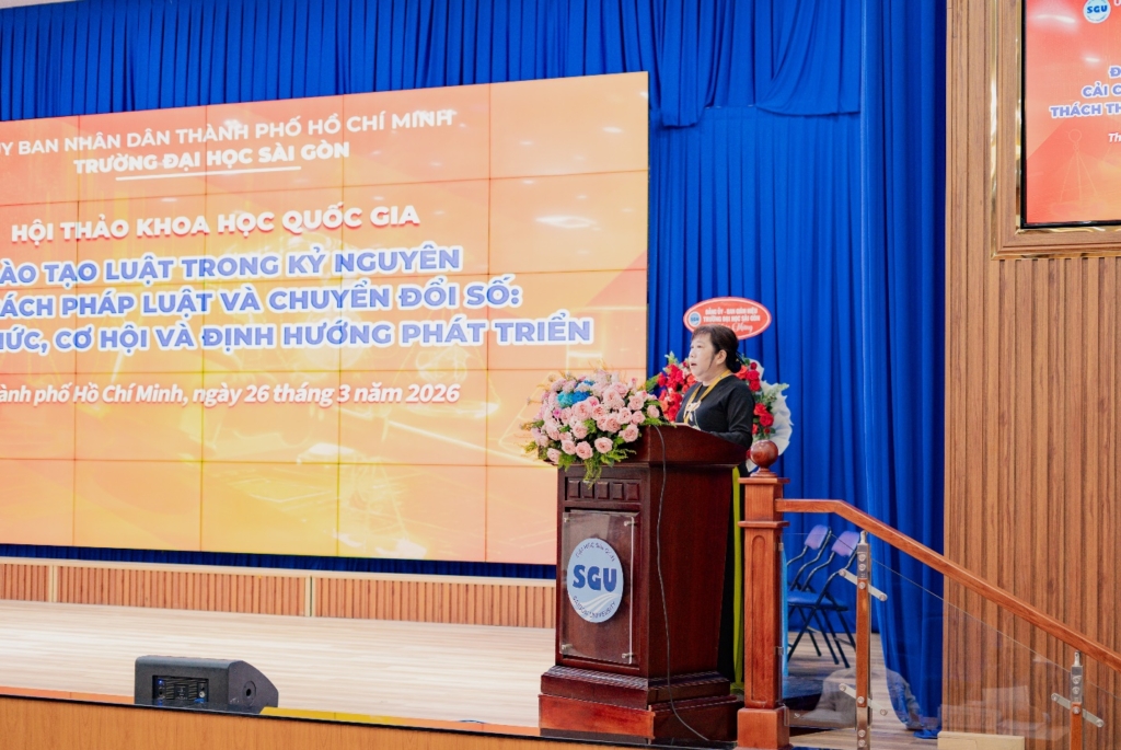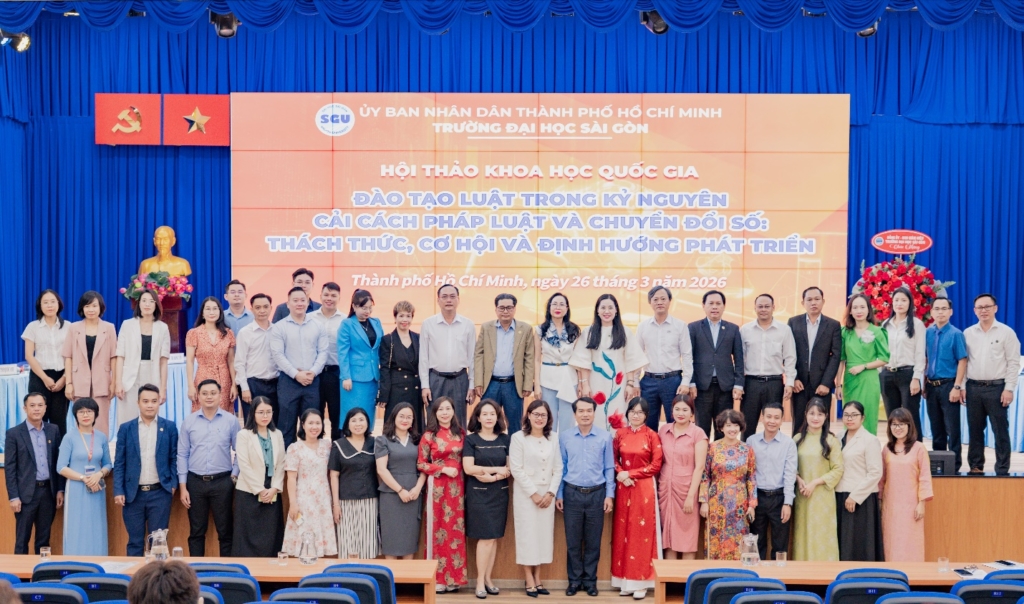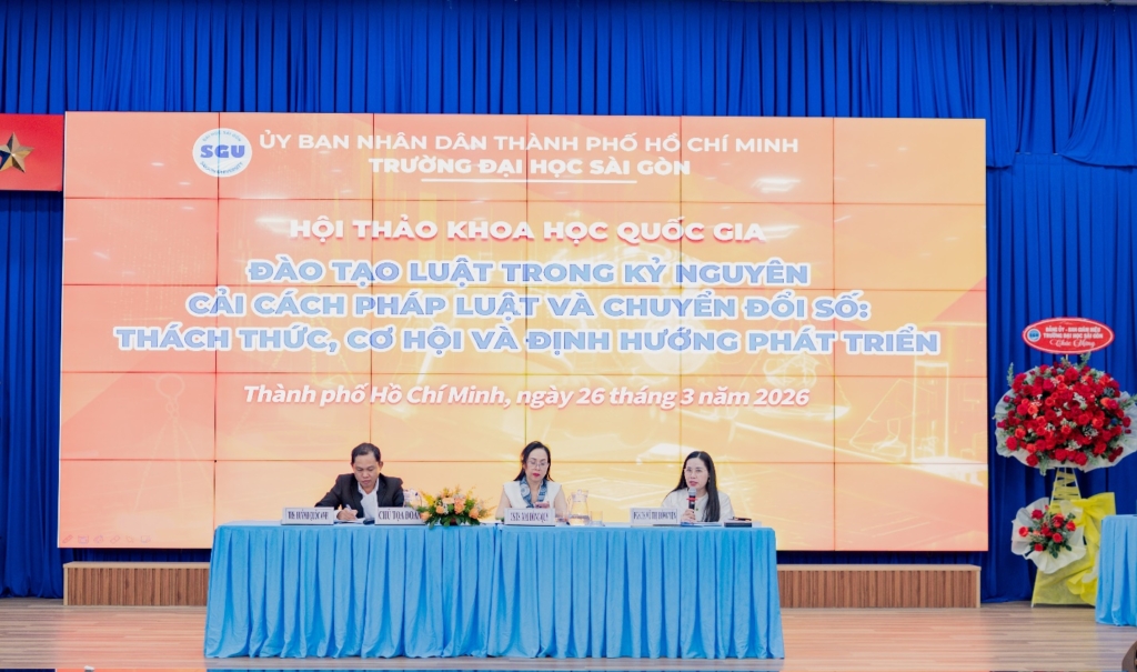 Ngày 26/3/2026, Trường Đại học Sài Gòn tổ chức Hội thảo khoa học cấp Quốc gia với chủ đề “Đào tạo luật trong kỷ nguyên cải cách pháp luật và chuyển đổi số: Thách thức, cơ hội và định hướng phát triển”. Hội thảo là diễn đàn để các nhà khoa học, nhà quản lý và các chuyên gia thực tiễn cùng phân tích, đề xuất các định hướng đổi mới hoạt động đào tạo luật, đáp ứng bối cảnh cải cách pháp luật và chuyển đổi số sâu rộng ở Việt Nam hiện nay. Hội thảo tập trung vào các mục tiêu chính: Phân tích, nhận diện các tác động đa chiều từ những cải cách pháp luật trọng điểm sẽ tác động đến nội dung và phương pháp đào tạo ngành Luật; Xác định các cơ hội và thách thức từ quá trình chuyển đổi số, từ đó đề xuất các giải pháp ứng dụng công nghệ, bảo vệ bản quyền, đảm bảo liêm chính khoa học trong giảng dạy và nghiên cứu khoa học; Thảo luận chuyên sâu về việc phát triển chương trình đào tạo, thiết kế phương pháp giảng dạy, đổi mới kiểm tra đánh giá nhằm đáp ứng chuẩn đầu ra theo các tiêu chuẩn kiểm định chất lượng giáo dục.