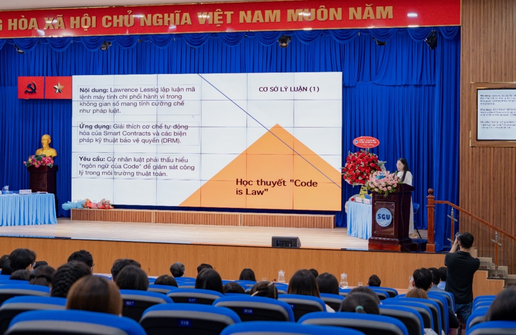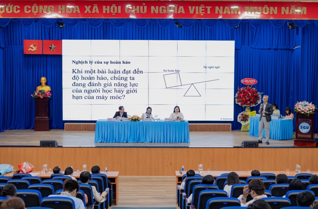 ThS. Nguyễn Việt Cường – Nghiên cứu viên độc lập về AI trình bày tham luận “Quản trị trí tuệ nhân tạo vì liêm chính học thuật và sở hữu trí tuệ trong đào tạo luật”