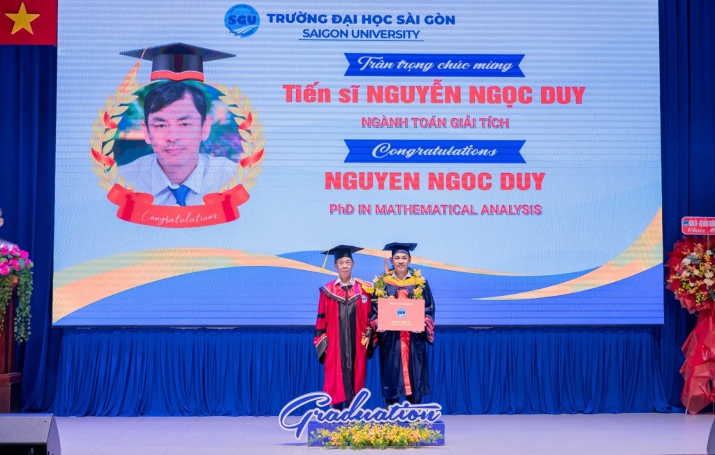 PGS.TS. Phạm Hoàng Quân trao bằng cho Tân tiến sĩ Nguyễn Ngọc Duy – Ngành Toán giải tích