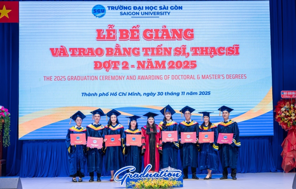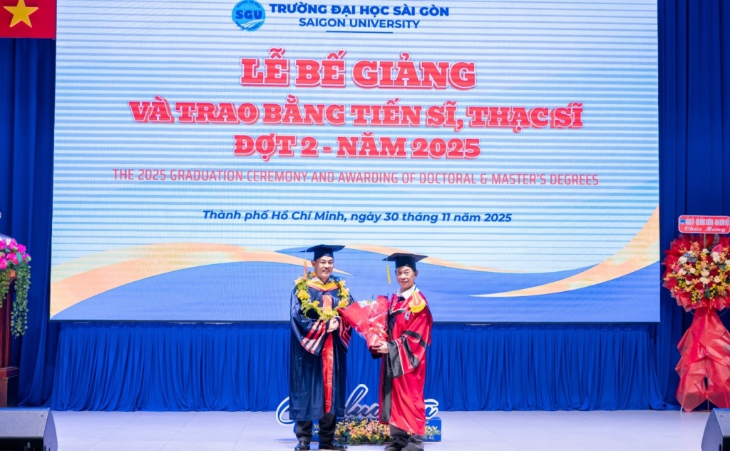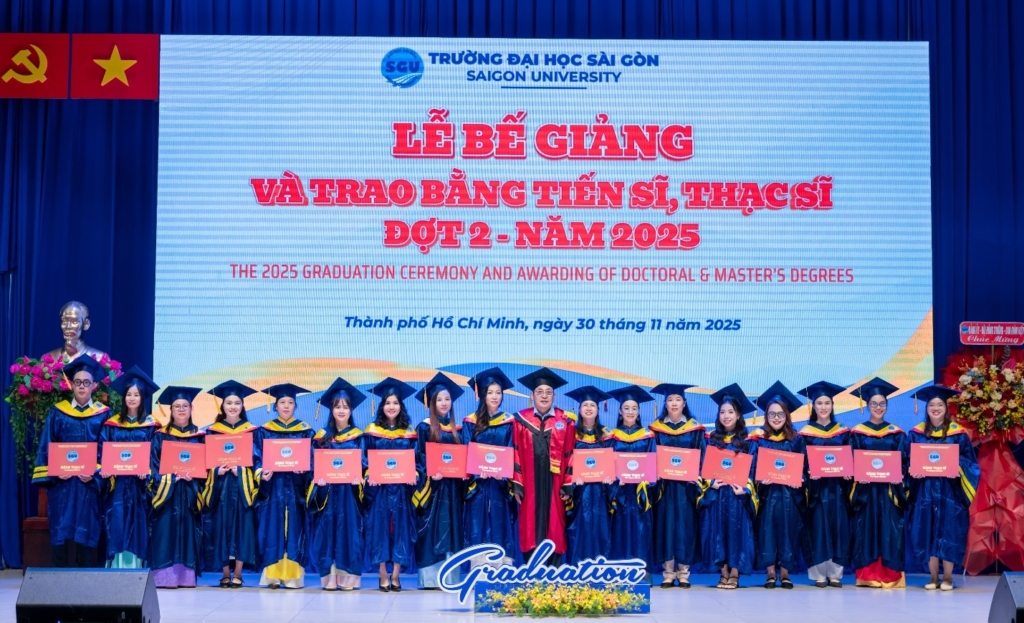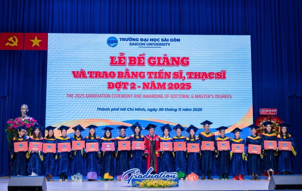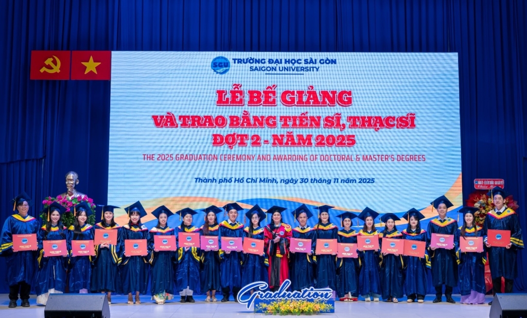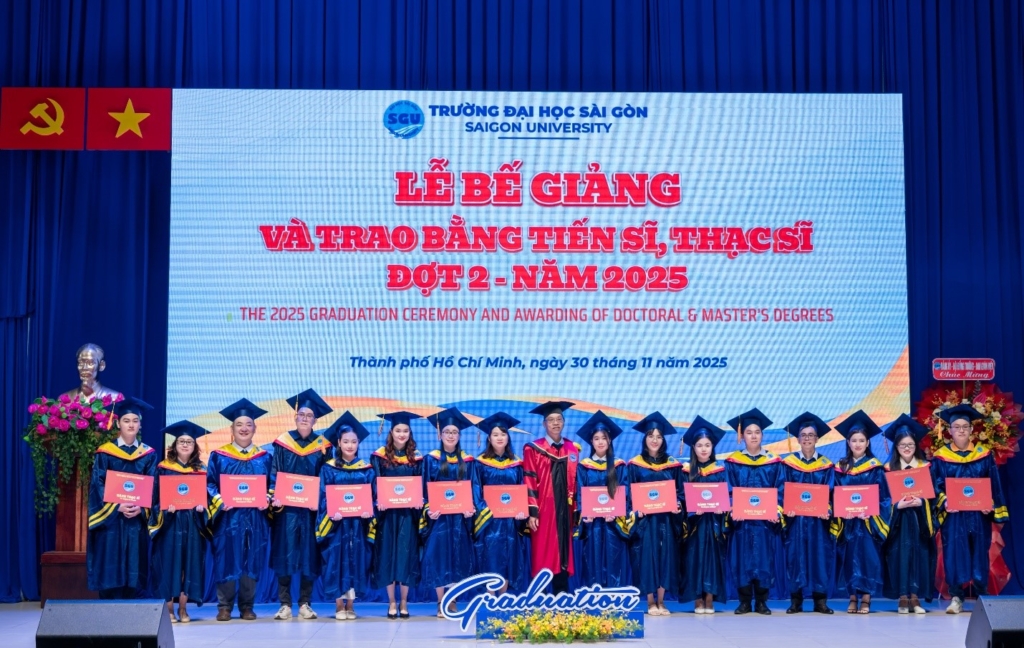 Chiều ngày 30/11/2025, Trường Đại học Sài Gòn long trọng tổ chức Lễ bế giảng và trao bằng tiến sĩ, thạc sĩ Đợt 2 – Năm 2025. Sự kiện nhằm tôn vinh nỗ lực học tập, nghiên cứu của các anh chị nghiên cứu sinh, học viên cao học các chuyên ngành đào tạo sau đại học tại Trường Đại học Sài Gòn.