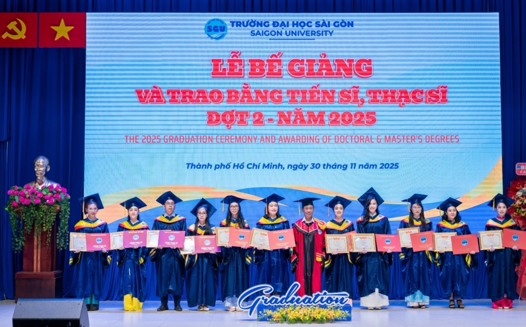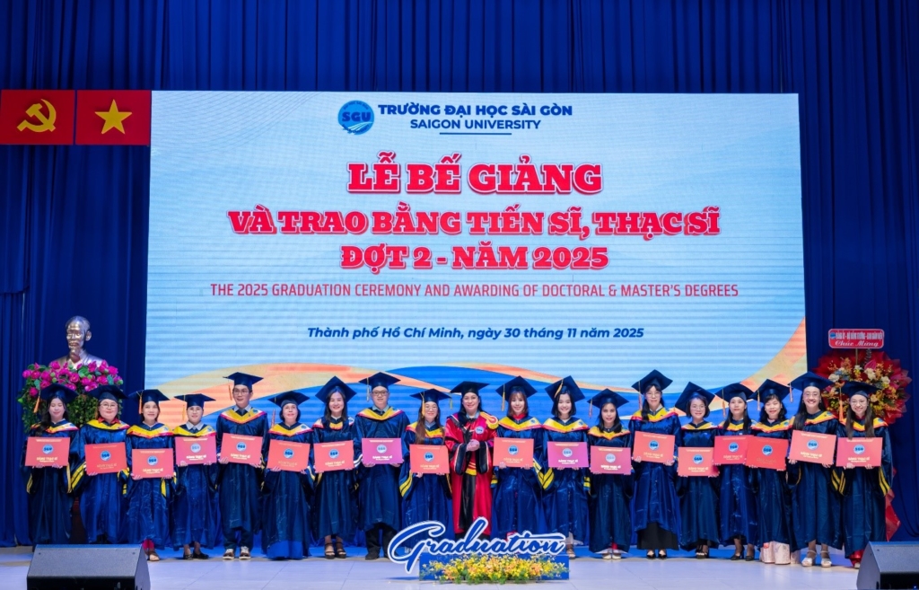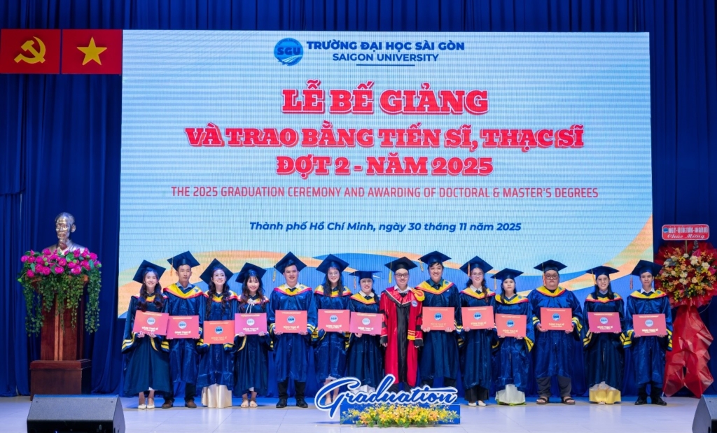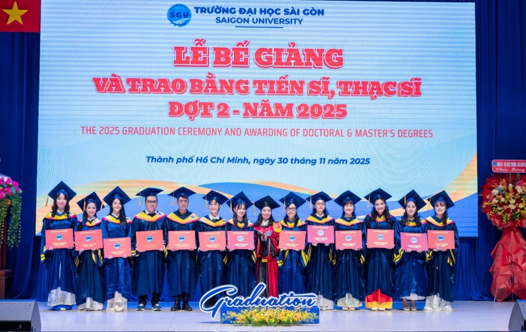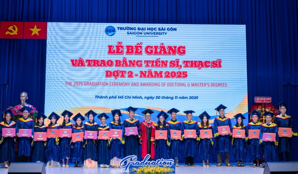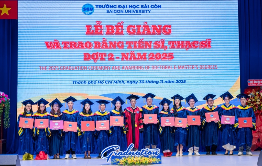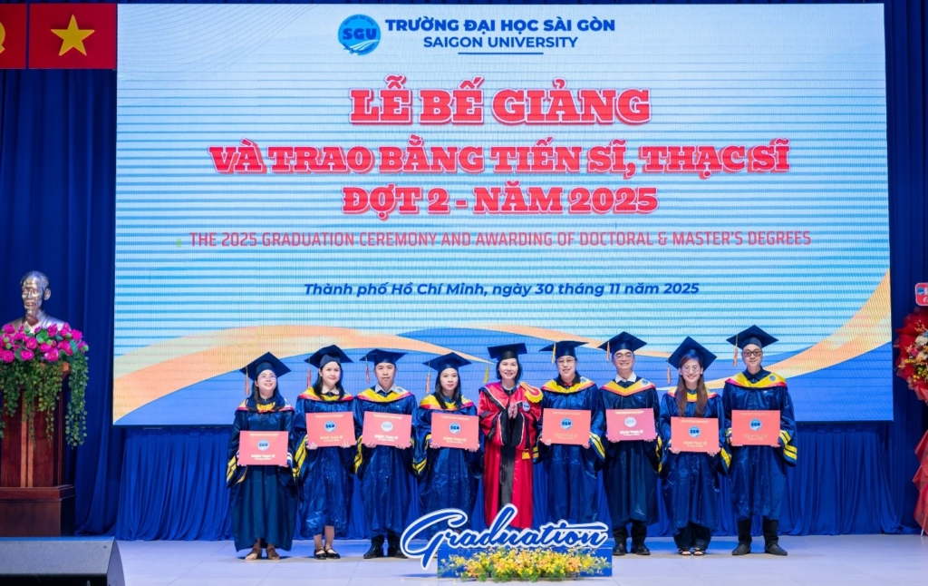 Chiều ngày 30/11/2025, Trường Đại học Sài Gòn long trọng tổ chức Lễ bế giảng và trao bằng tiến sĩ, thạc sĩ Đợt 2 – Năm 2025. Sự kiện nhằm tôn vinh nỗ lực học tập, nghiên cứu của các anh chị nghiên cứu sinh, học viên cao học các chuyên ngành đào tạo sau đại học tại Trường Đại học Sài Gòn.