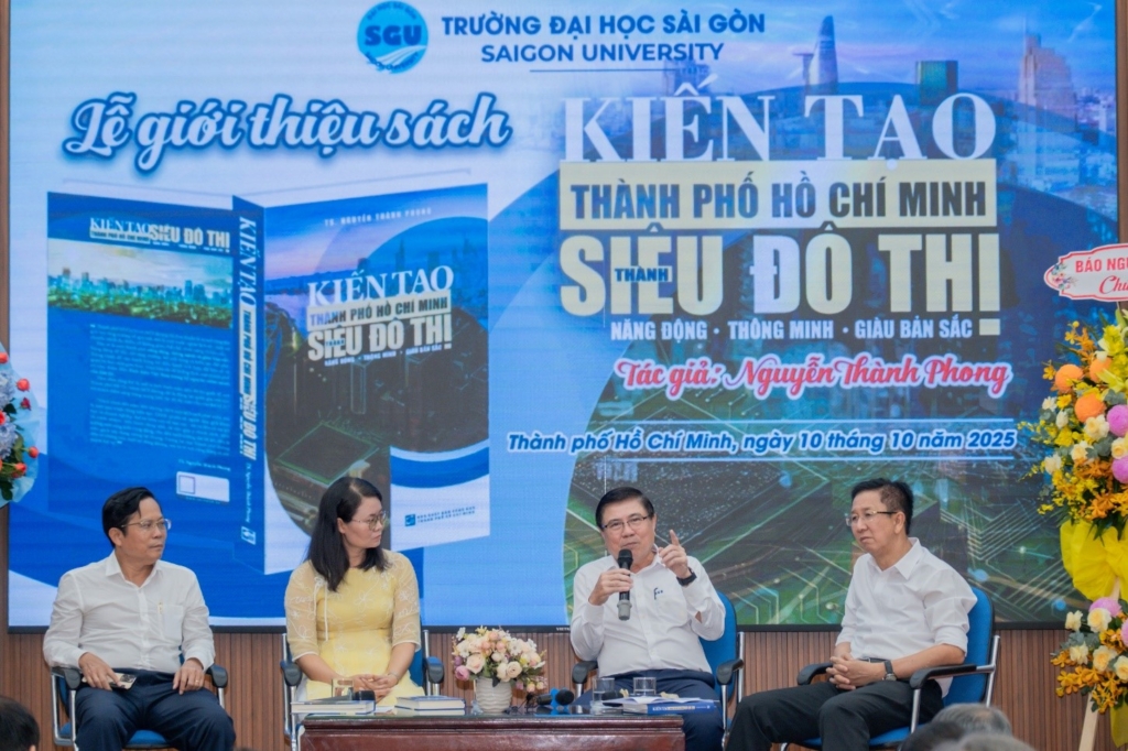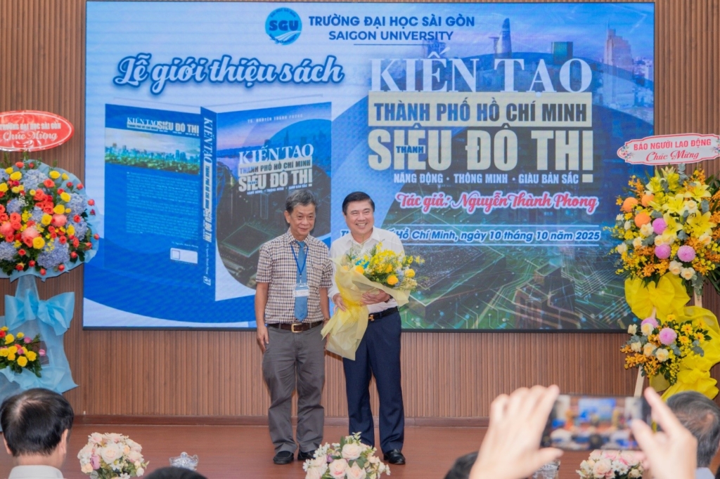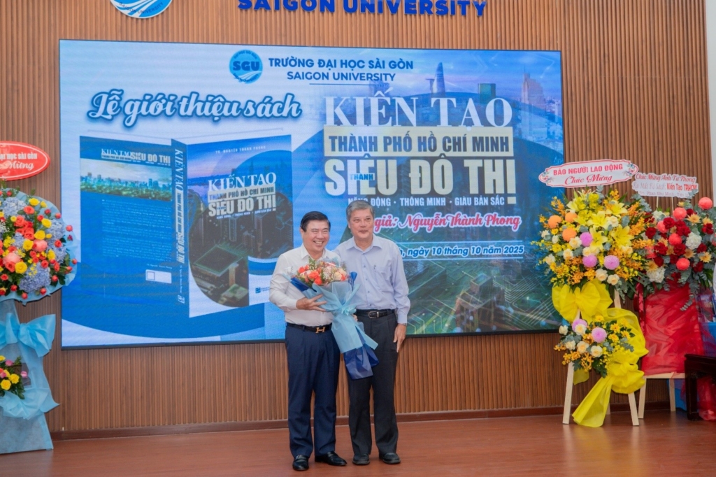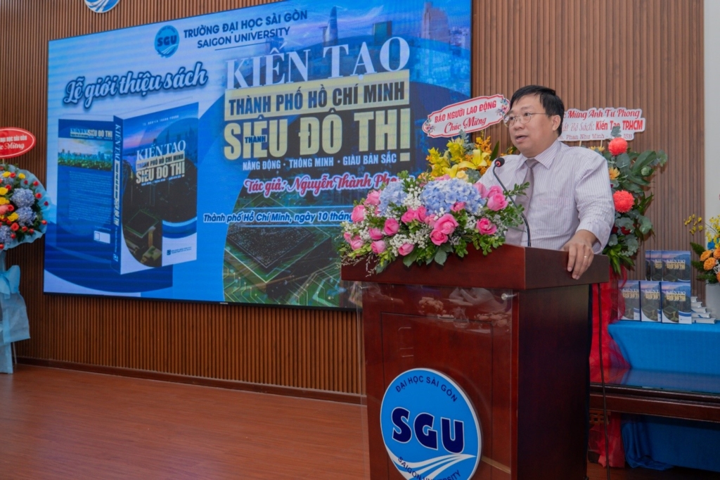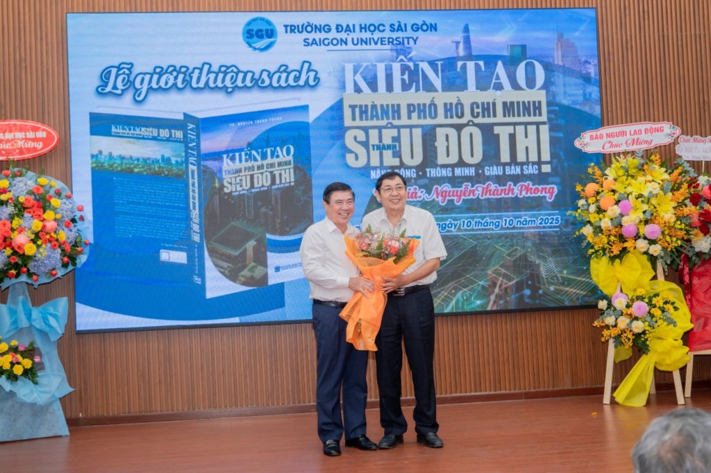 Ngày 10/10/2025, Trường Đại học Sài Gòn đã tổ chức Lễ giới thiệu sách “Kiến tạo Thành phố Hồ Chí Minh thành siêu đô thị năng động – thông minh – giàu bản sắc” của tác giả TS. Nguyễn Thành Phong – Nguyên Chủ tịch Ủy ban nhân dân Thành phố Hồ Chí Minh, Chủ tịch Hội đồng khoa học Viện Nghiên cứu Kinh tế – Xã hội Trường Đại học Sài Gòn; được xuất bản bởi Nhà Xuất bản Tổng hợp Thành phố Hồ Chí Minh. Tác phẩm là công trình nghiên cứu khoa học triển khai theo hướng tiếp cận liên ngành kinh tế – xã hội – văn hóa – công nghệ – thể chế, được cấu trúc thành bốn phần lớn, mỗi phần là một lát cắt quan trọng cho tiến trình xây dựng Thành phố Hồ Chí Minh MỚI.