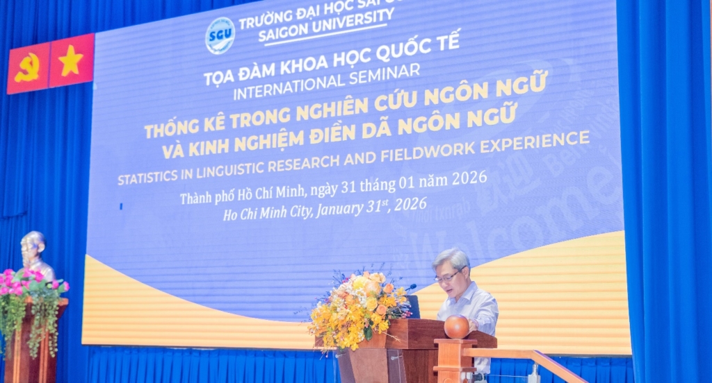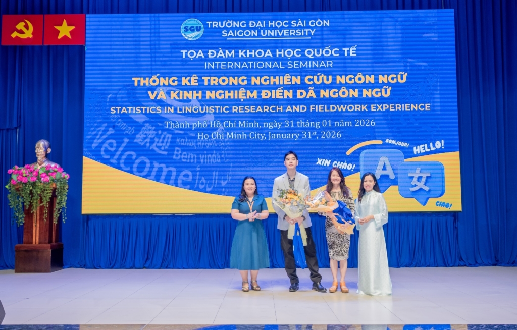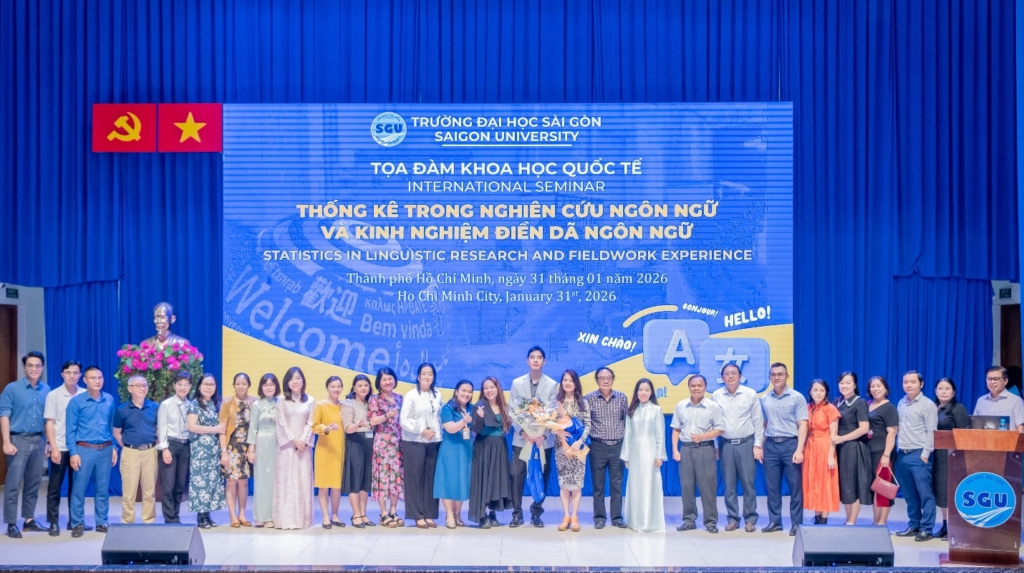 Ngày 31/01/2026, Trường Đại học Sài Gòn tổ chức Tọa đàm khoa học Quốc tế với chủ đề “Thống kê trong nghiên cứu ngôn ngữ và kinh nghiệm điền dã ngôn ngữ (Statistics in Linguistic Research and Fieldwork Experience)” với 02 chuyên đề “Thu tư liệu xong, công việc kế tiếp là gì? Một hướng dẫn trong phân tích tư liệu (The Data Is In, Now What? A Guide to Post-Fieldwork Analysis)” và “Điều hướng tư liệu: Thực hành phương pháp thống kê Suy luận trong nghiên cứu (Navigating Your Data: Practical Inferential Statistics for Everyday Research)”, nhằm tạo diễn đàn chia sẻ kiến thức, phương pháp và kinh nghiệm ứng dụng thống kê trong nghiên cứu ngôn ngữ, đồng thời giới thiệu các kỹ năng điền dã ngôn ngữ học thực tiễn từ đó nâng cao năng lực nghiên cứu cho học viên cao học, sinh viên và các nhà nghiên cứu trẻ. Tọa đàm cũng là dịp để mở rộng kết nối học thuật quốc tế, thúc đẩy hợp tác nghiên cứu, truyền cảm hứng cho các hướng đề tài mới, và trang bị cho người học những định hướng cùng công cụ quan trọng trong nghiên cứu khoa học.